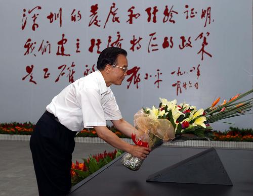 8月21日,溫家寶專程來到深圳博物館參觀《改革開放總設(shè)計(jì)師鄧小平》大型展覽。這是溫家寶參觀展覽前向鄧小平同志塑像獻(xiàn)花。