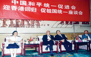 1997年6月22日,中國和平統(tǒng)一促進(jìn)會在人民大會堂舉辦“迎香港回歸,促進(jìn)祖國統(tǒng)一”座談會。王光英、萬國權(quán)會長等領(lǐng)導(dǎo)同志出席座談會并發(fā)表講話。