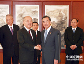 吳伯雄抵達北京 王毅到機場迎接]]>