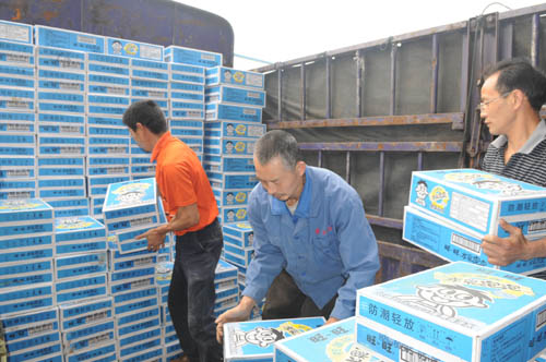 旺旺集團(tuán)在緊張搶運(yùn)捐獻(xiàn)的物資