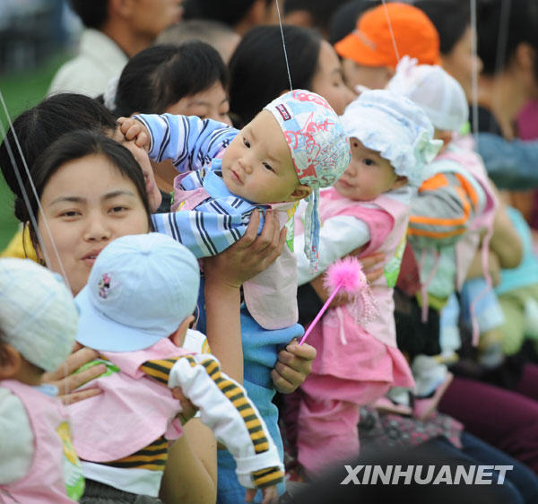 2009年5月13日,在什邡市剛剛落成的由北京援建的北京小學(xué)操場(chǎng)上,108個(gè)“羅漢娃”舉行了集體生日抓周活動(dòng)。許多愛(ài)心人士不遠(yuǎn)千里來(lái)到現(xiàn)場(chǎng),與寶寶們結(jié)對(duì),拜認(rèn)干爹干媽。