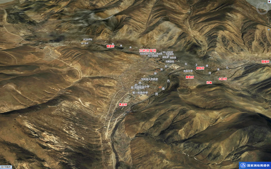 玉樹地震災區高清衛星影像圖(圖片由國家測繪局提供)