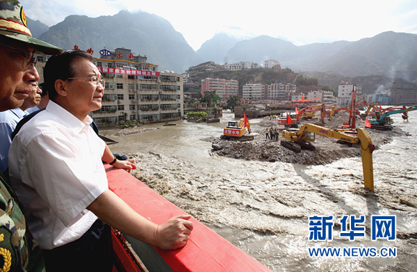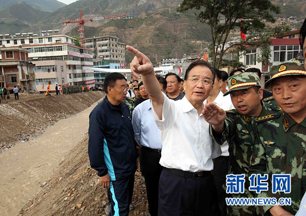 8月21日至22日,中共中央政治局常委、國務(wù)院總理溫家寶再次來到舟曲災(zāi)區(qū),看望受災(zāi)群眾,慰問堅守救災(zāi)一線的部隊官兵,實地指導(dǎo)搶險救災(zāi)和恢復(fù)重建工作。這是8月22日,溫家寶來到受災(zāi)嚴重的舟曲縣羅家峪,了解應(yīng)急抗洪明渠搶修進展情況,研究下一步救災(zāi)措施。新華社記者 劉衛(wèi)兵攝