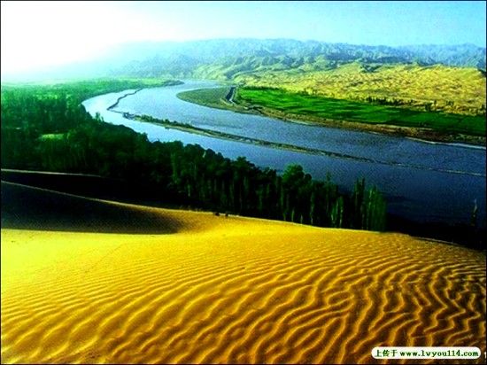 寧夏中衛(wèi)沙坡頭國家首批AAAAA景區(qū),位于騰格里沙漠腹地,是一處富有濃郁西部特色的著名沙漠旅游區(qū)。高山、黃河、沙漠、長城和綠洲在此匯聚一地,形成了獨特的自然地理人文景觀。奔流的黃河,無際的沙漠,神奇的沙漠草原,蒼涼的明代長城,造型雄秀的古水車,吸引了眾多游客。在此可騎駱駝遨游沙海,乘坐古老羊皮筏子漂流黃河,咫尺之間領(lǐng)略大漠孤煙,長河落日的奇異景觀。