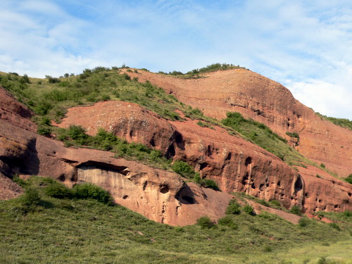 火石寨“丹霞地貌”位于西吉縣西北部的火石寨鄉(xiāng)內(nèi),南北長17千米,東西寬10千米,現(xiàn)已被自治區(qū)批準為“丹霞地貌”自然保護區(qū)。保護區(qū)距西吉縣城10千米,有紅色、紫紅色的山崖、山峰、山脊、怪石突兀于黃土高原之上,地貌景觀壯觀奇美。也因紅色砂巖裸露,當(dāng)?shù)厝税堰@里叫火石寨。“丹霞地貌”源自于粵北仁化境內(nèi)的丹霞山,是一種由巨厚的紅色砂巖、礫巖等紅巖組成,經(jīng)地殼抬升運動和流水的侵蝕、溶蝕以及風(fēng)化剝落、崩塌后退等外力作用所形成的丹崖峭壁、石峰林立等特殊地貌。丹霞地貌在我國的風(fēng)景地貌和山水景觀中,獨具一格,是我國風(fēng)景名勝區(qū)的重要類型之一。從北魏開始鑿造,盛于隋唐,數(shù)處石窟均鑿建在百余米高的石崖絕壁上。置身其間,心清神爽,飄飄欲仙。民國《西吉縣志》在介紹云臺山時說, “山高峰峻,深洞危橋,重巒疊翠,曲而幽深”,“每遇山雨欲來,必先油然作云。即晴亦多煙嵐。啼鳥鐘聲,隱約其中,花香撲鼻,足堪娛目”。這里有掃竹嶺,石寺山,禪佛寺三處石窟,各有特色,他們都是自然造化與人類智慧的有機結(jié)合。