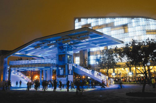 臺(tái)北花博人氣高漲,富有特色的場(chǎng)館令民眾驚艷,LED燈光雕出夜晚不同的風(fēng)采,紅、橙、藍(lán)、白、紫各自綻放出多顏的風(fēng)情。 圖片來源:臺(tái)灣《聯(lián)合報(bào)》