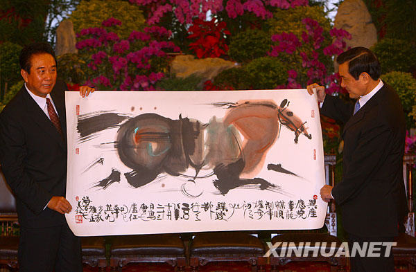 新華網快訊:馬英九與海協會會長陳云林的會面于11時5分許結束,雙方互贈了禮物。