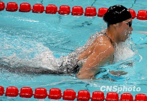 10月20日晚,在濟南奧體中心游泳館進行的女子200米個人混合泳決賽中,解放軍代表隊的齊暉以2:08.32的成績獲得冠軍,并打破了亞洲紀錄。圖為齊暉在比賽中。中新社發 劉震 攝