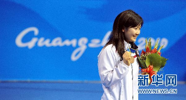 11月20日,日本選手福原愛在女子單打頒獎儀式上微笑。被人們昵稱為“瓷娃娃”的日本選手福原愛在第16屆亞運會乒乓球女子單打項目中獲得銅牌。新華社記者劉大偉攝