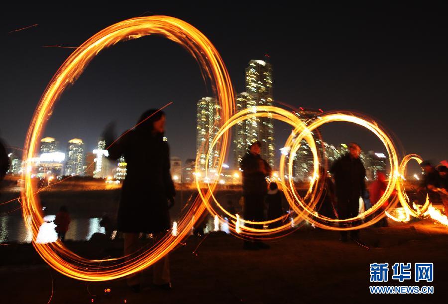 2月5日,在韓國首爾,人們?nèi)挤艧熁ㄓ.?dāng)日,為迎接即將到來的傳統(tǒng)節(jié)日——元宵節(jié),首爾居民舉行了多種慶祝活動。在韓國,元宵節(jié)有很多風(fēng)俗,如吃年糕、五谷飯、花生、核桃等干果,喝耳明酒,“焚燒月亮屋”許愿,放風(fēng)箏、玩尤茨游戲等。新華社發(fā)(樸真熙攝)