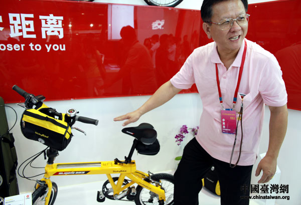 記者在現(xiàn)場看到,小到閃存、智慧型跟蹤器,大到售價(jià)不菲的競速賽車,跑步機(jī),還有遙控直升機(jī)、彩色電子童書以及各種鼠標(biāo)、鍵盤、筆記本電腦等產(chǎn)品,小小的“臺灣精品館”,處處體現(xiàn)著科技內(nèi)涵。澎錸實(shí)業(yè)公司的黃中庸總經(jīng)理一直忙著向參觀民眾介紹著自家生產(chǎn)的伸縮自行車,從承載重量到伸縮設(shè)計(jì),顯得非常自豪。他說,“不要小看這一臺車,我們可是獲得多項(xiàng)國際專利的”。