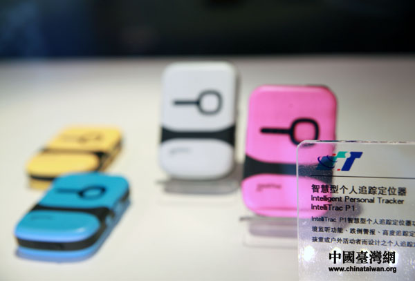 展館內(nèi)展示的科技產(chǎn)品之一,智慧型個人追蹤定位器。(中國臺灣網(wǎng) 鐘寶華 攝)
