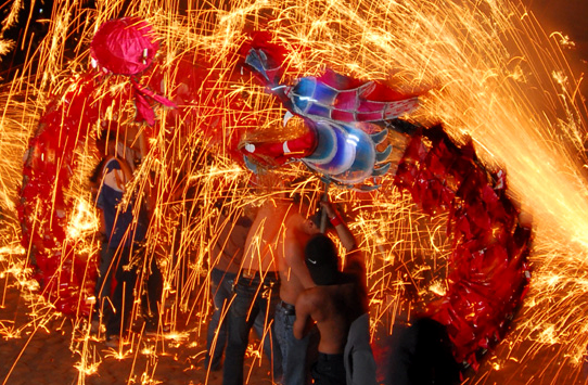 元宵節在海南的府城也是個特別的“情人節”,洋溢著許多浪漫色彩。海口府城每年元宵節有換花的習俗。一到正月十五,府城就變成了一個大花園,到處花團錦簇、霓虹閃爍,賣花的攤位一家接著一家。隨著夜幕的降臨,換花節漸漸開始了,人們如潮水般涌來,姑娘們和小伙子們手上拿著鮮花,如果在進行的路上,若是遇到稱心的異性或朋友,或者看中了另外一個人手中的鮮花,就會主動迎上去,與他(她)交換手中的鮮花,相互祝福。這種換花的活動吸引了許多的青年男女。在茫茫人海中,換花成了一些有緣份的青年男女的第一次“約會”,一段美好的姻緣也許就由此而生了……