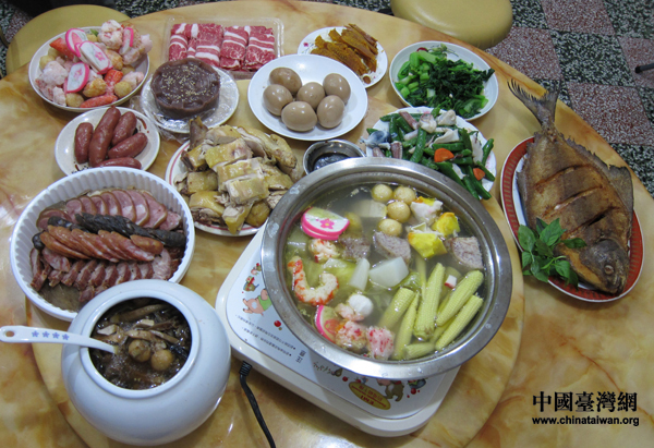中國臺灣網2月3日臺北消息 除夕夜是農歷年的活動起點,這天最重要的事情就是家人團圓圍爐、開心地吃頓年夜飯。一般人家的年夜飯菜色,當然比不上五星飯店的豐富、精致,但平日在外地忙碌的家人,能團聚在一起,已經是最大的福份。而且,圍爐菜的名稱,通通寓意深遠,隱含著無限祝福;蛟S,在臺灣民眾的心中,新的一年,守護全家人簡單的幸福,就從這一道道吉祥又如意的年夜菜開始。(圖/文 大陸臺生會 林峻生)