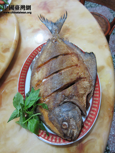 酥炸銀鯧魚。想要年年有余,餐桌上當然要有條大魚才行。
