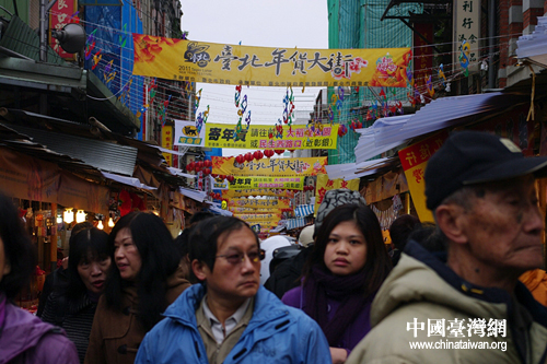 中國臺灣網2月3日臺北消息 臺北市過年最重要的采購據點名為迪化街,從1996起被正式規劃為“年貨大街”,舉凡過年期間吃的喝的,這條街上通通為您備齊。迪化街建于1850年,是臺北最古老的一條街道。