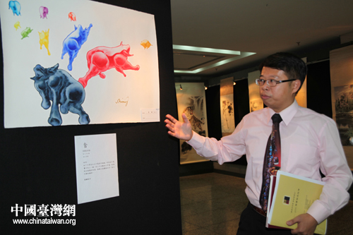 臺灣畫家蔣麟介紹自己的作品(中國臺灣網 李典典 攝)
