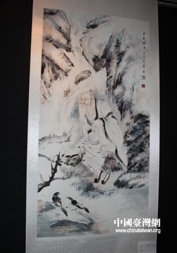 于美珍作品 《山野清趣》,山中真意在,自有嶺中客,只可自怡悅,愛護大自然,護野生動物。(中國臺灣網 李典典 攝)