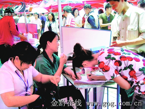“七一”期間,六盤水市在中心城區(qū)的人民廣場(chǎng)開展大型招聘活動(dòng),上萬(wàn)青年與上百家用人單位雙向交流、選擇,用人單位多數(shù)是賓館酒店、網(wǎng)絡(luò)等服務(wù)型民營(yíng)企業(yè)和一些中介機(jī)構(gòu),這次招聘活動(dòng)提供2000個(gè)崗位供求職者選擇。