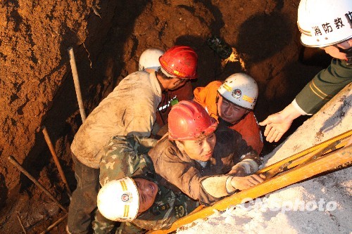 12月14日晚,貴州省六盤水市一建筑工地發(fā)生塌方事故,當(dāng)時(shí)正在管道溝里作業(yè)的一名民工下半身被塌方的泥土掩埋,當(dāng)?shù)叵拦俦泳笱杆仝s到現(xiàn)場(chǎng),不顧自身安危,用雙手將埋壓民工下半身周邊的泥土一一刨出來(lái)。經(jīng)過1個(gè)多小時(shí)的緊張救援,被困民工終于得救,送往醫(yī)院救治。
