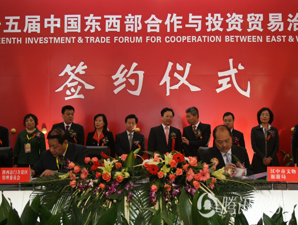 騰訊旅游訊 4月6日,依托西洽會這一契機,為了進一步加快陜西省旅游項目建設(shè),推動旅游產(chǎn)業(yè)發(fā)展。陜西省旅游局舉辦了第十五屆西洽會陜西旅游項目簽約儀式。陜西省副省長景俊海出席簽約儀式,陜西省旅游局局長董憲民、副局長陳清亮等領(lǐng)導(dǎo)出席并講話,以及省內(nèi)外20多位旅游投資商參加了簽約儀式。共達成了10個全省重點旅游建設(shè)項目,總投資金額達45.59億元人民幣。