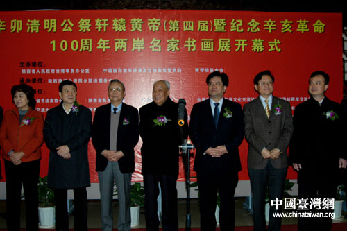 中國臺灣網4月6日西安消息 日前,清明公祭軒轅黃帝(第四屆)暨紀念辛亥革命100周年海峽兩岸書畫展在西安隆重開幕。原中共陜西省委書記、原省政協主席安啟元,省政協副主席、民革陜西省委主委李曉東,中國書協顧問、原副主席鐘明善先生出席本次活動,陜西省臺辦副主任趙有奇主持本次活動。