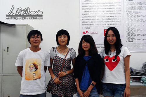 謝鈞(右二)與學生記者合影留念。圖片來源:人民網(wǎng)