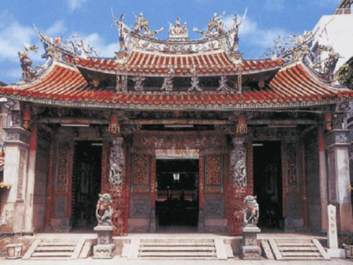 祀典臺南大天后宮(俗稱府城大媽祖廟),在赤崁之南,大井頭之北,坐向“窩鏡窗”來龍,向“時鐘樓”住鰲,旋媽祖港古渡頭出臺江內(nèi)海,坐辰向戍兼乙辛。宮主祀神為宋代莆田湄洲林氏女諱默,民間通稱娘媽或媽祖。這是臺海兩岸三地古老的媽祖廟宇之一,也是當今保存完整的古廟之一。從古到今,香火旺盛,海內(nèi)外朝拜者如潮。