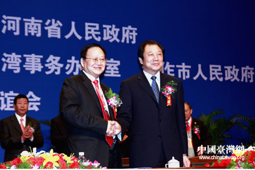 在隨后進行的2009豫臺經(jīng)貿(mào)洽談會簽約儀式上,共簽定投資項目30余個,涉及食品制造業(yè)、光伏產(chǎn)業(yè)、商業(yè)等領(lǐng)域,總投資額達112億元人民幣,合同臺資103億人民幣。