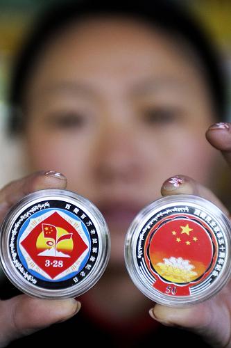 近日,為紀念西藏民主改革50周年,經西藏民主改革50周年紀念活動辦公室批準,玉鑲金、純銀紀念章在拉薩發行。新華社記者 普布扎西攝