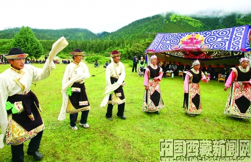 資料圖片:圖為旅游景點的服務(wù)人員向游客表演富有民族特色的文藝節(jié)目。圖片來源:《西藏日報》