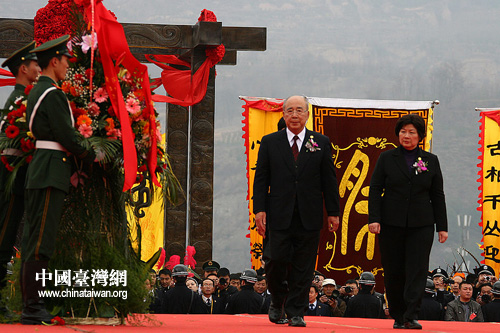 中國(guó)臺(tái)灣網(wǎng)4月5日西安消息 辛卯年清明公祭軒轅黃帝典禮5日上午在陜西省黃陵縣橋山祭祀大院隆重舉行。中國(guó)國(guó)民黨榮譽(yù)主席吳伯雄和夫人戴美玉應(yīng)邀參加,并敬獻(xiàn)花籃。(記者 李典典)